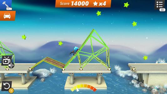 Really the title does explain everything about the game. The premise is to go from point A to point B in a truck. Along these path's will be uncompleted bridges or ramps in your way, the game provides you with the necessary tools to complete those ramps and use them to get to point B. Each level progressively get more complex and you are scored based on time in the air, number of flips, environmental damage and stars and screws collected along the way. There are a few dozen levels to beat split off into different sections. As you perfect levels you will unlock more to play later on.