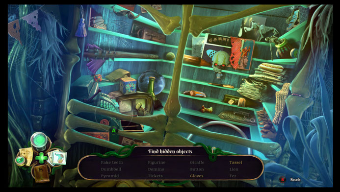 Hidden object scenes are similar to the iSPY books and old school games. You a given a image with about 12-16 hidden items you must find, there is no time limit and you have the option of using hints, although that will void a achievement for using no hints during HOS's. The scenes were my favourite part of the game and I was always racing to the next.