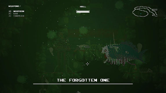The way Aquatic Adventure of the Last Human plays is quite simple and easy to navigate. The submarine can move in all directions and does so fluidly. Using the right thumbstick you can aim your harpoon gun attached to the bottom of the submarine and shoot. Enemies, switches, crates and even friendly fish can all be speared and sliced. The only caveat is that you cannot shoot a full 360 degrees around your sub, only the area below the bottom half. It won’t take you long to discover that your regular harpoon shot is not powerful and won’t go very far. You can hold down the right trigger and it will charge a more powerful shot, but this takes longer to do. The second weapon you will acquire is the saw that is used for cutting through vines and slicing enemies. Other items I earned were a stronger engine, hull shield, lamp and a thruster that allows me to zoom quickly in short bursts. Unlocking new upgrades allows you to backtrack to earlier areas and pass any obstacles that once blocked the way. Moving and shooting feels good but there are moments where the camera zooms out and it becomes harder to move precisely and occasionally see your character amongst the level background. Once you have completed the game on normal you can play again on hardcore mode. There are also achievement incentives for completing hardcore mode and playing the game without upgrading (yikes!).