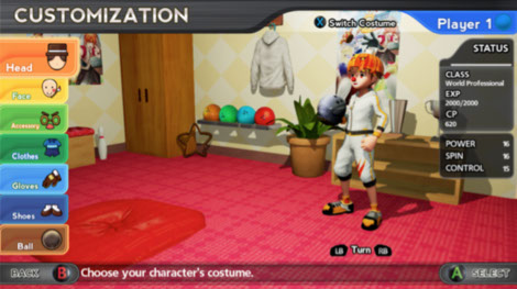 These rewards can go from a custom to a ball or even another set of challenges. These challenges can range from all sorts of difficulties such as easily “scoring 40 points within 90 seconds”. To something more difficult which would be “Hit at least two pins with a single throw, but no more than 8, 6, and 4 pins in that order.” If you have a friend over you can then play against each other in Battle and see who can knock over a certain amount of frames first. You can also customize your characters in the Locker Room if you are into that. While you are customizing your characters in the Locker Room you can actually upgrade their Power, Spin and Control of the ball. Just incase you were struggling before.