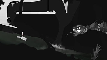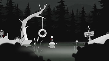 The first thing most people will notice about Albert and Otto is the distinct visual style. It comes across as a mix of Limbo and Monochroma. Vivid white colors contrast nicely with black and gray backgrounds, as of course red Otto just seems to pop off screen. The music does a great job of blending in, setting the lonely and sometimes perilous tones without causing a distraction. The game flows seamlessly from chapter to chapter without interruption. The occasional cutscenes are all performed in-game as well, keeping you constantly engaged in the level. While it may look simple in screenshots, all the small details in the foreground and background come alive while playing. Graphics and sound are some of the best features in Albert and Otto.