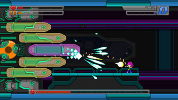 Bleed 2 is a twin-stick shooting action game that combines gunplay, melee attacks and triple jumping. What you end up with is an incredibly fast-paced and stylish shooter where you never worry about running out of ammo. If you played the original Bleed then you know what to expect, except Bleed 2 controls even better. I found the jumping to be much more responsive and easier to control in Bleed 2. My main double guns felt more powerful and the graphics were improved as well. Wryn can melee pink projectiles back at enemies, which is not only fun but incredibly satisfying. The time meter from the original game returns, allowing you to attack enemies in slow motion. Everything just feels so smooth; shooting, jumping and melee make for fun and engaging boss fights. One big difference I noticed in Bleed 2 is that there is less traversal of stages and instead more boss fights. Expect to dispose of a few bosses in every level. While every boss fight requires a certain strategy, I did occasionally long for more run and gun gameplay against lesser enemies. Players are still scored by a points and letter grade system at the end of each section.