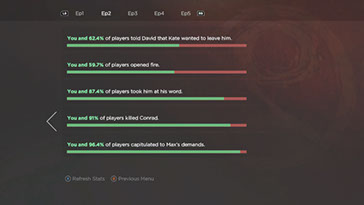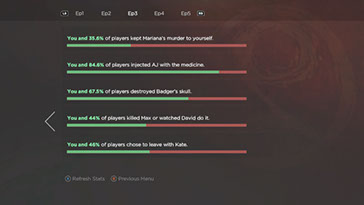 At the beginning of the fourth episode of this instalment you are brought into a flashback Javi has. He is with his brother at a baseball batting range. All this was about was showing how Javi became the sports player he is now. It also shows how depressed his brother was. You escape from being imprisoned and meet Kate and you try to get ready for a fight. You end up getting caught by Ava, but she doesn’t mind and helps you out. You also have a moment in the episode where you have the choice to help kill Lingard by drugging him or not. There’s also a special moment between you and Kate before getting to the finale and you have the choice of saying to her that you share the same feelings with her. However, you don’t need to say you share the same feelings. Then at the end you have the choice between Ava or Tripp to save since Joan told you to pick one of them. Whoever you pick, is the one that dies. Talk about reverse psychology. Your also given a deal to run away with your family and whoever doesn’t die or to shoot Joan. Kate comes in and blows a hole into Richmond. Big important episode but very slow.